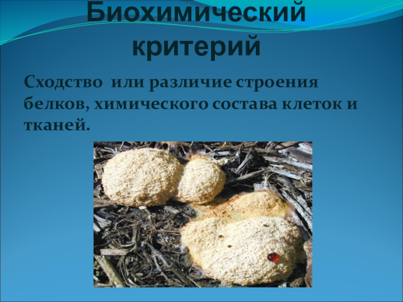 Биохимический критерийСходство или различие строения белков, химического состава клеток и тканей.