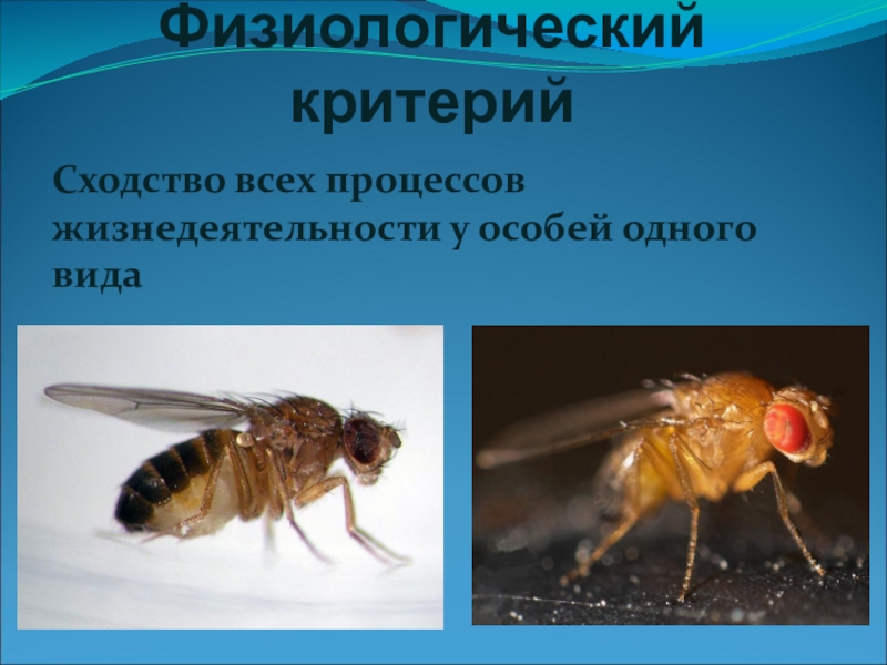 Физиологический критерийСходство всех процессов жизнедеятельности у особей одного вида