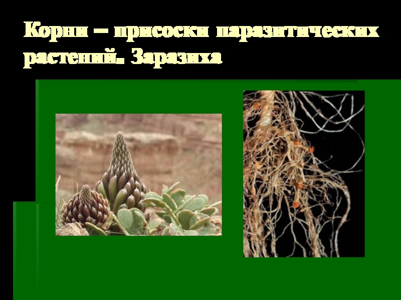 Слайд 7Корни – присоски паразитических растений. Заразиха