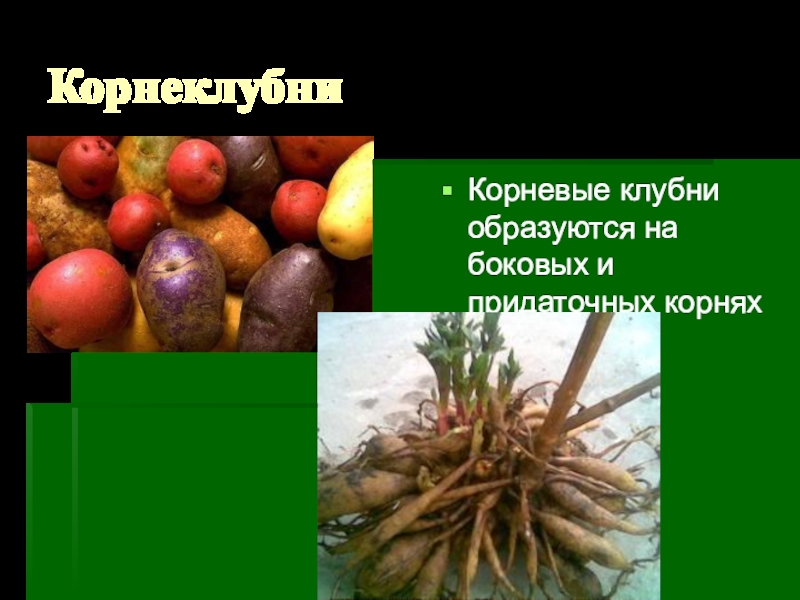 КорнеклубниКорневые клубни образуются на боковых и придаточных корнях