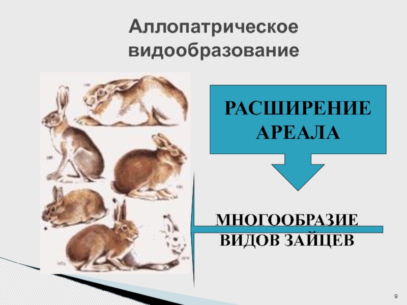 Аллопатрическое видообразование РАСШИРЕНИЕ АРЕАЛАМНОГООБРАЗИЕ ВИДОВ ЗАЙЦЕВ