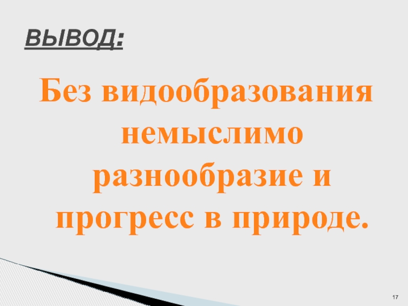 Слайд 17Без видообразования немыслимо разнообразие и прогресс в природе.