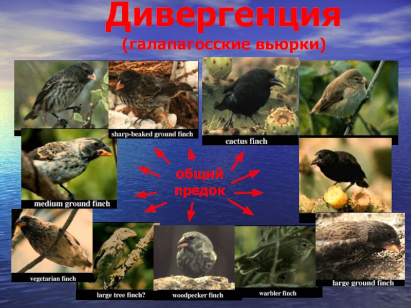 Слайд 6Дивергенция (галапагосские вьюрки)