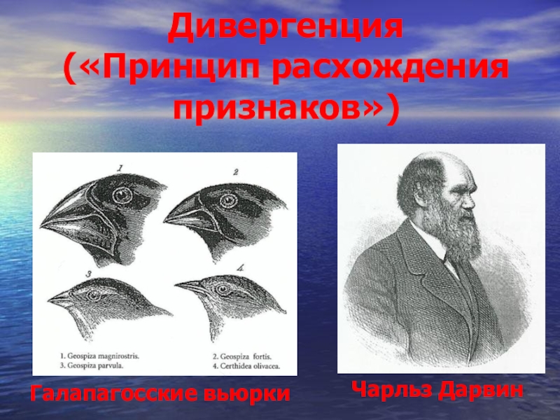 Дивергенция («Принцип расхождения признаков»)Чарльз ДарвинГалапагосские вьюрки