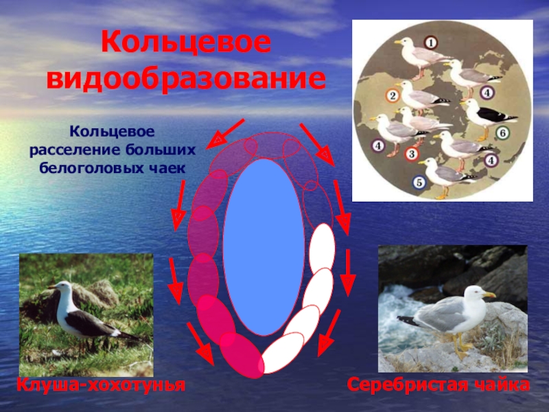 Кольцевое видообразованиеКольцевое расселение больших белоголовых чаекКлуша-хохотуньяСеребристая чайка