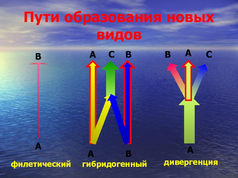 Пути образования новых видовфилетическийгибридогенныйдивергенцияАААВВВССААВ