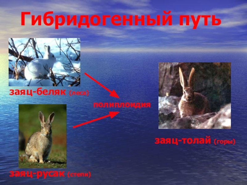 Гибридогенный путьзаяц-беляк (леса)заяц-русак (степи)заяц-толай (горы)полиплоидия