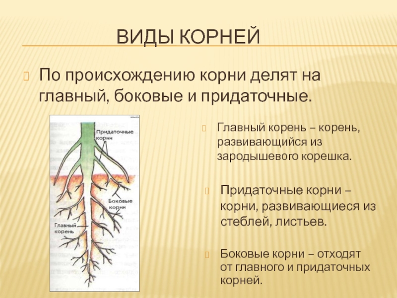 Главный корень – корень, развивающийся из зародышевого корешка.