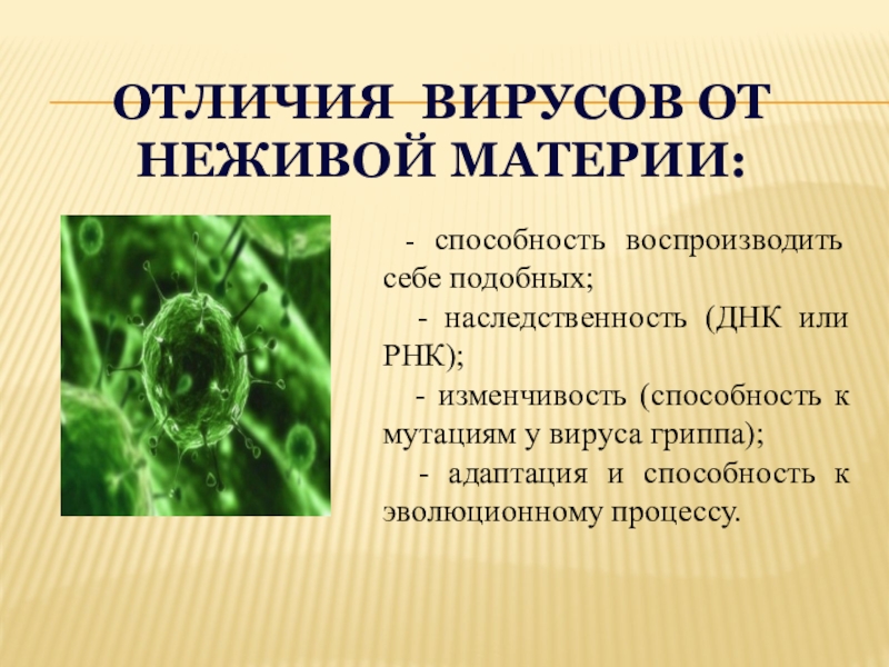 - вирусы не способны к самостоятельной репродукции своей наследственности вне клетки хозяина;