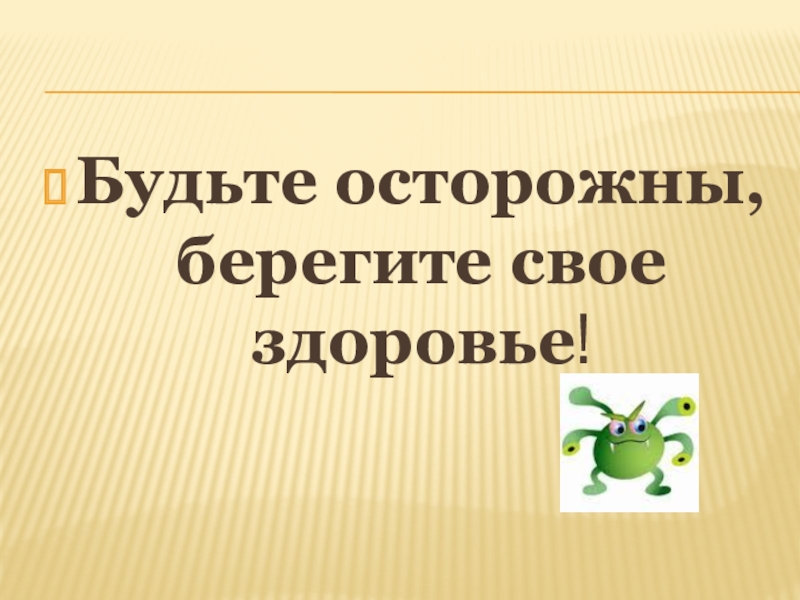 Слайд 43Будьте осторожны, берегите свое здоровье!