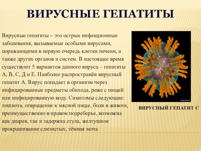 А, В, С, Д и Е. Наиболее распространён вирусный