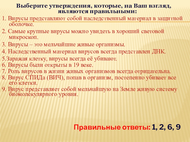 9. Вирус представляет собой мельчайшую на Земле живую систему биомолекулярного уровня.
