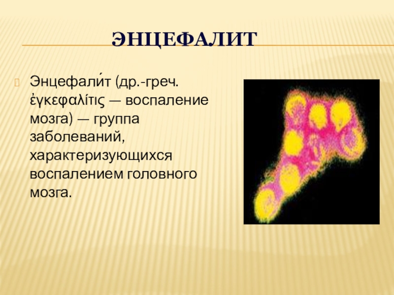 Энцефали́т (др.-греч. ἐγκεφαλίτις — воспаление мозга) — группа заболеваний, характеризующихся воспалением