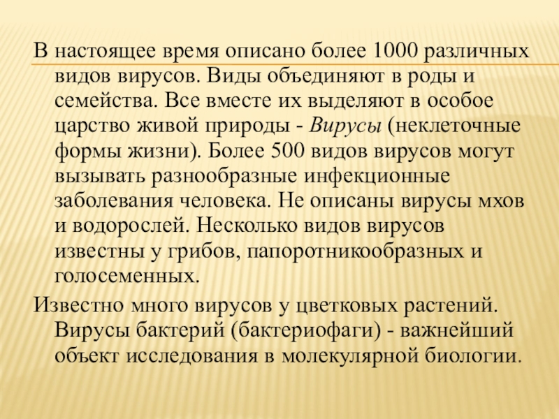 Слайд 10В настоящее время описано более 1000 различных видов вирусов. Виды объединяют