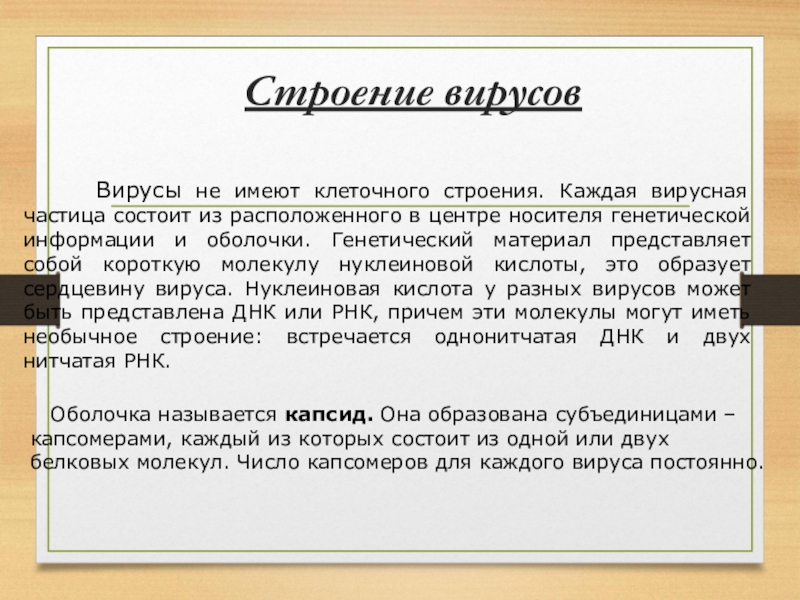 Оболочка называется капсид. Она образована субъединицами – капсомерами, каждый из которых состоит из одной или двух белковых молекул. Число капсомеров для каждого вируса постоянно.