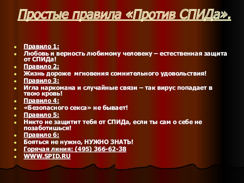 Слайд 41Простые правила «Против СПИДа».