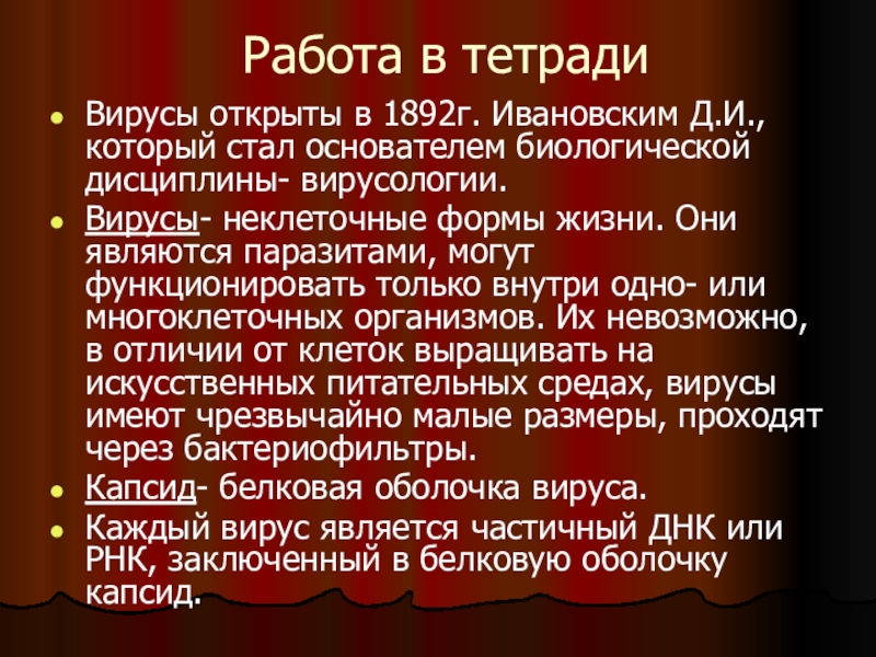 Вирусы открыты в 1892г. Ивановским Д.И., который стал основателем