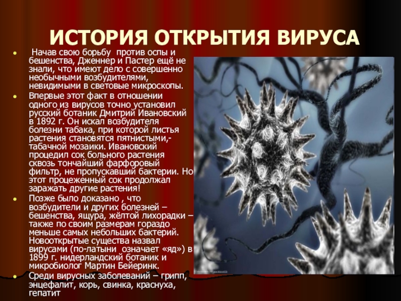 Слайд 4ИСТОРИЯ ОТКРЫТИЯ ВИРУСА