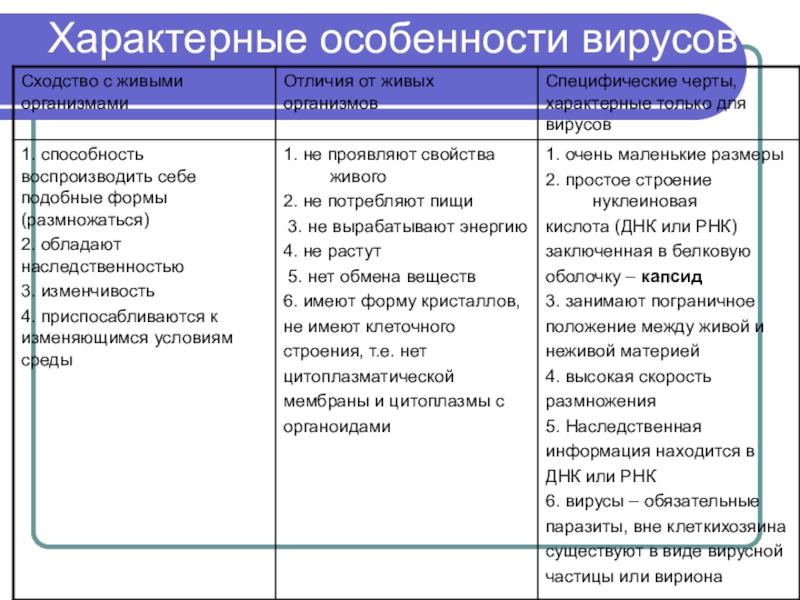 Характерные особенности вирусов