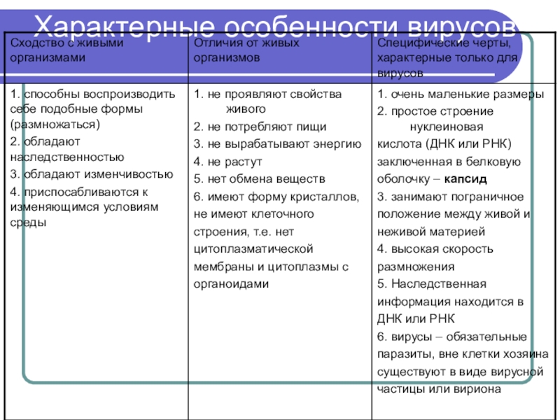 Признаки:
