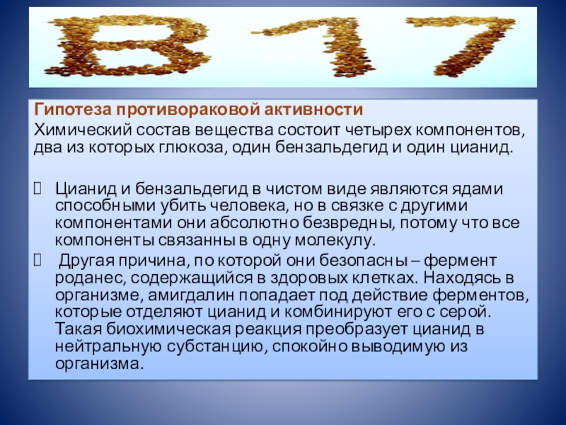 Слайд 2Витамин В17, который также называют амигдалин, впервые был выделен в чистом