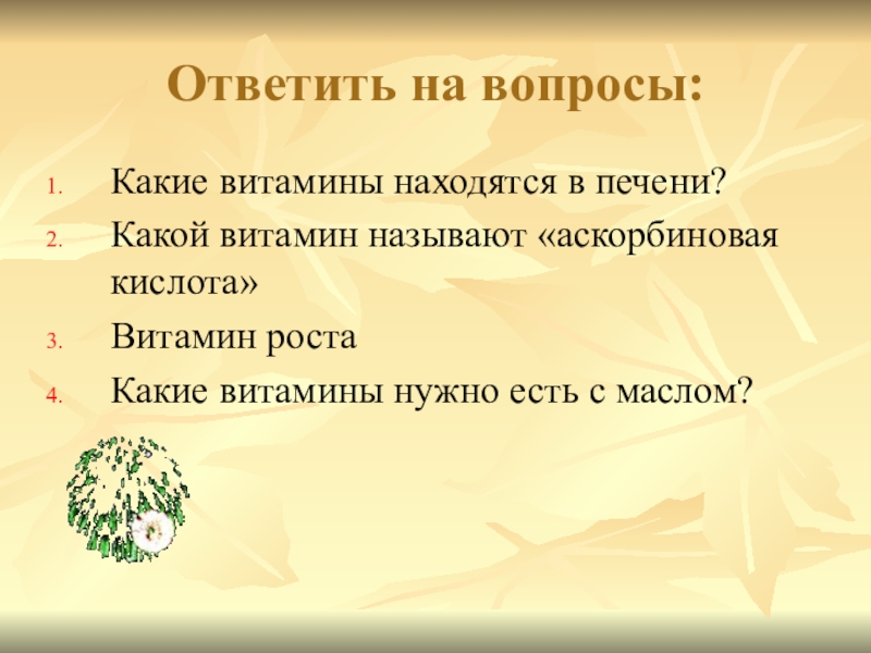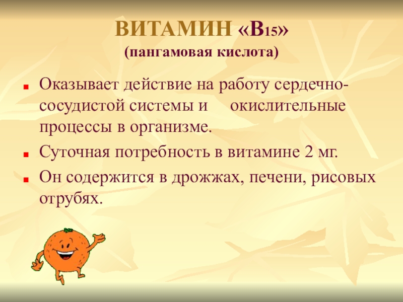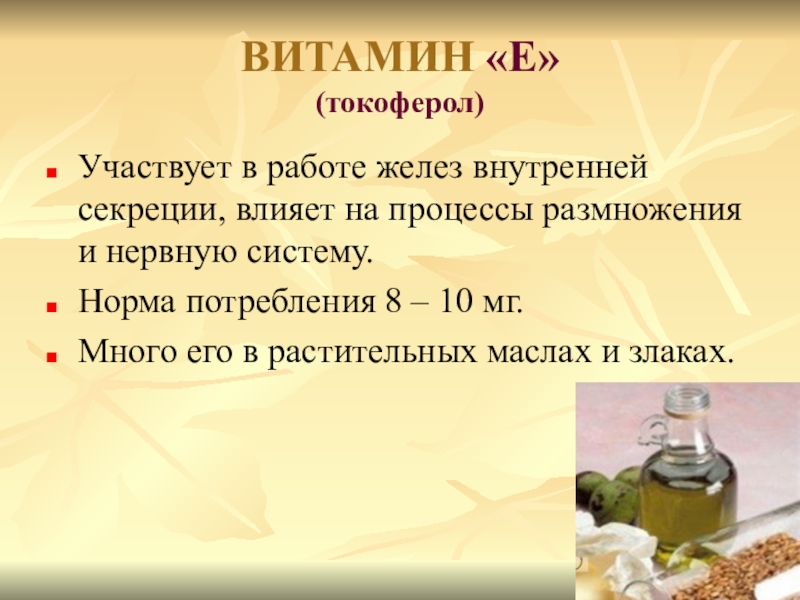 При недостатке его замедляется рост, слабеет зрение, выпадают волосы, Он содержится в продуктах животного происхождения: рыбьем жире, печени, молоке, мясе. В растительных продуктах желто-оранжевого цвета ( морковь, помидоры, тыква)