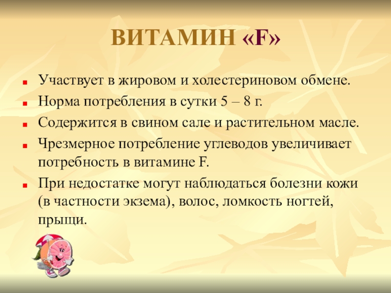 Чрезмерное потребление углеводов увеличивает потребность в витамине F.