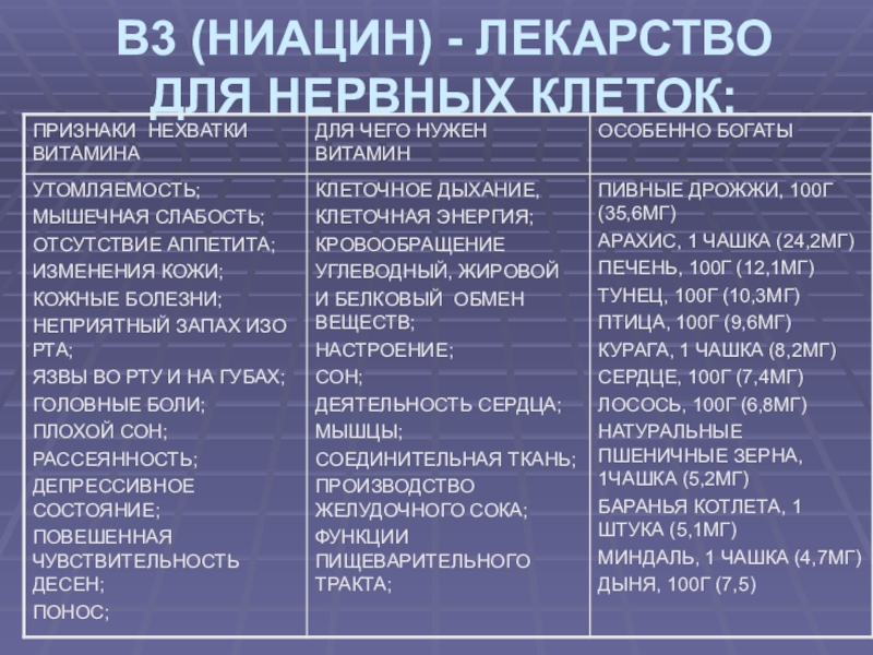 Слайд 11В3 (НИАЦИН) - ЛЕКАРСТВО ДЛЯ НЕРВНЫХ КЛЕТОК: