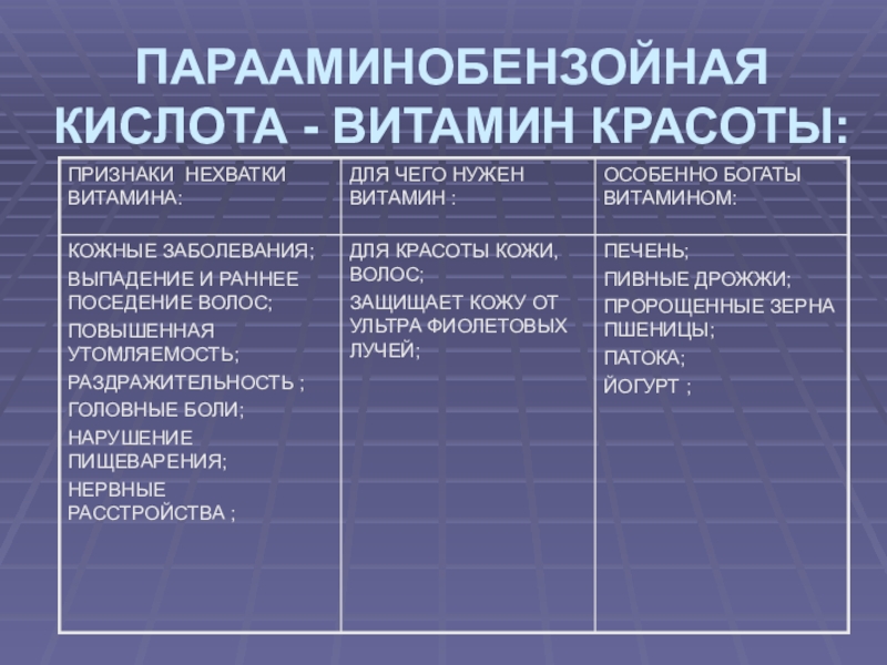 Слайд 18ПАРААМИНОБЕНЗОЙНАЯ КИСЛОТА - ВИТАМИН КРАСОТЫ: