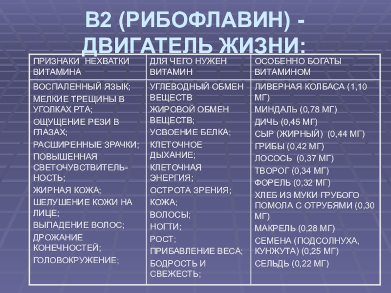 Слайд 10В2 (РИБОФЛАВИН) - ДВИГАТЕЛЬ ЖИЗНИ: