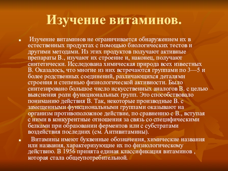 Изучение витаминов не ограничивается обнаружением их в естественных продуктах