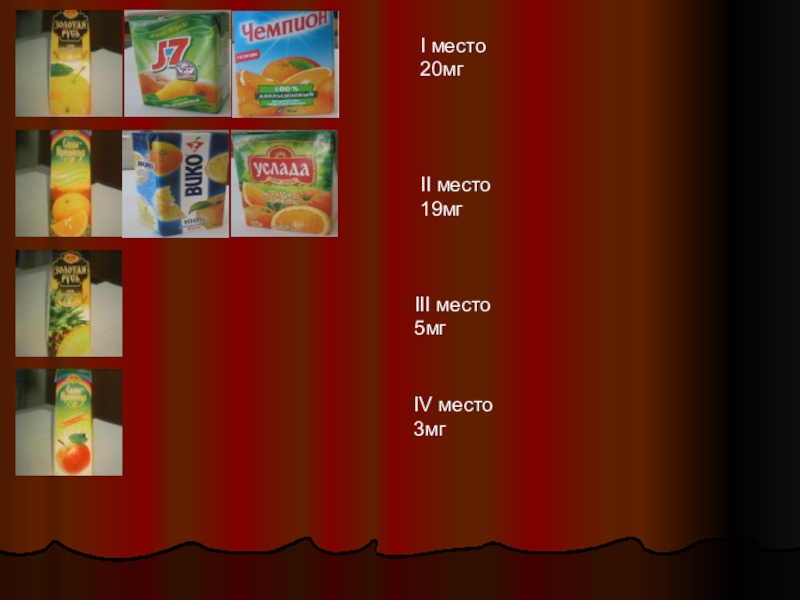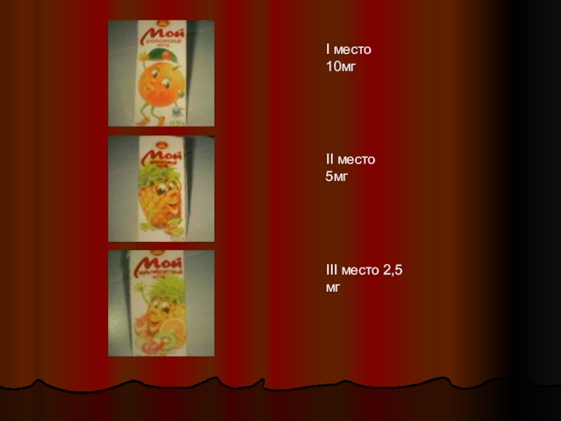 0,54 мл 5 % р-ра иода – Х мг аскорбиновой кислоты => Х = 0,54×35 = 19 мг