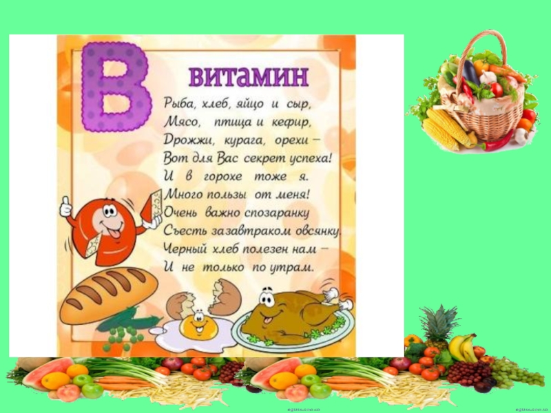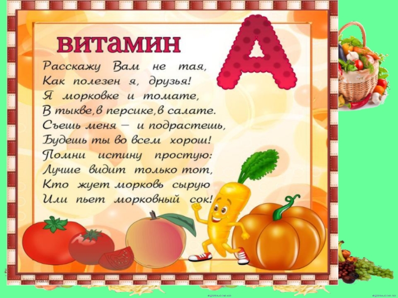 Катя очень любит пить чай с сыром. Она получает витамин В. 3. Вчера моя мама испекла пирожки с печенью, в которой очень много витамина А.