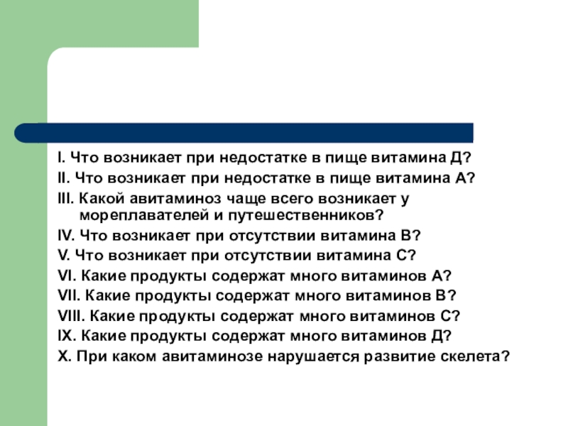 III. Какой авитаминоз чаще всего возникает у мореплавателей и путешественников?