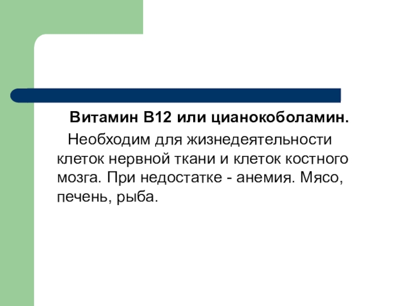 ткани и клеток костного мозга. При недостатке - анемия. Мясо, печень, рыба.