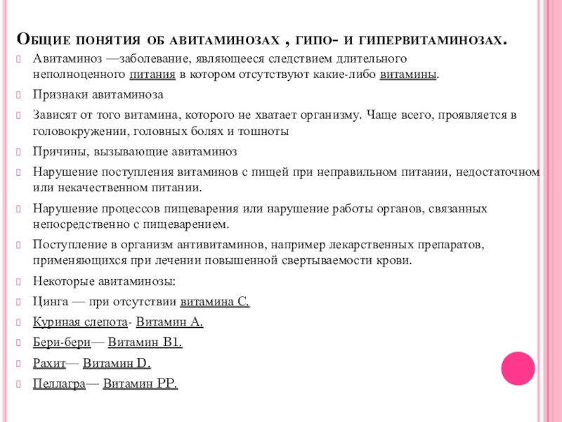 Слайд 12Общие понятия об авитаминозах , гипо- и гипервитаминозах.