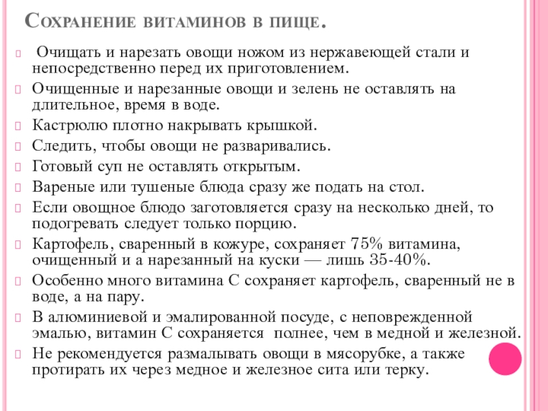 Какие правила следует соблюдать при приготовлении пищи с целью сохранения витаминов