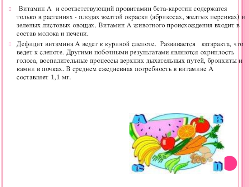 Слайд 8 Витамин А и соответствующий провитамин бета-каротин содержатся только в растениях