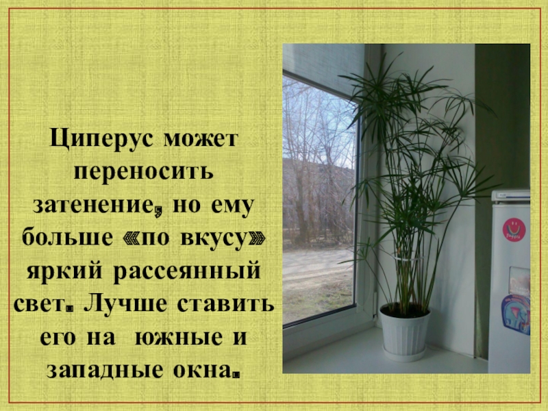 Слайд 7Циперус может переносить затенение, но ему больше «по вкусу» яркий рассеянный