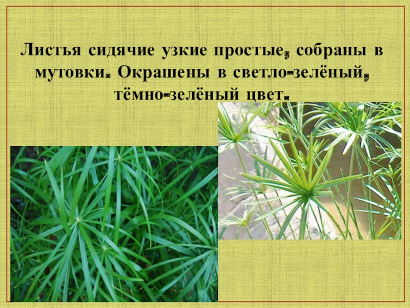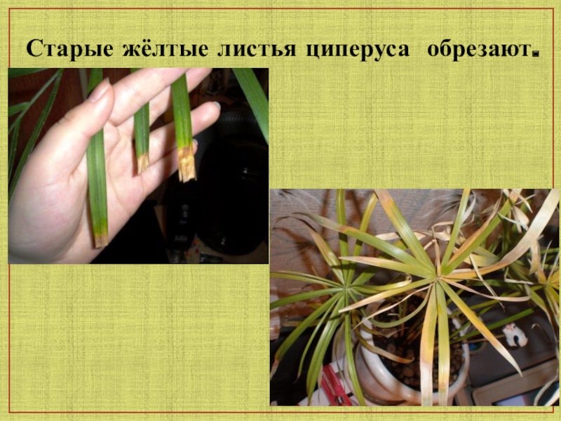 Слайд 10Старые жёлтые листья циперуса обрезают.