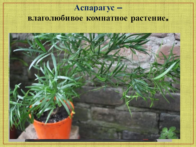 Слайд 1Тема урока. Влаголюбивые комнатные растения: циперус, аспарагус.