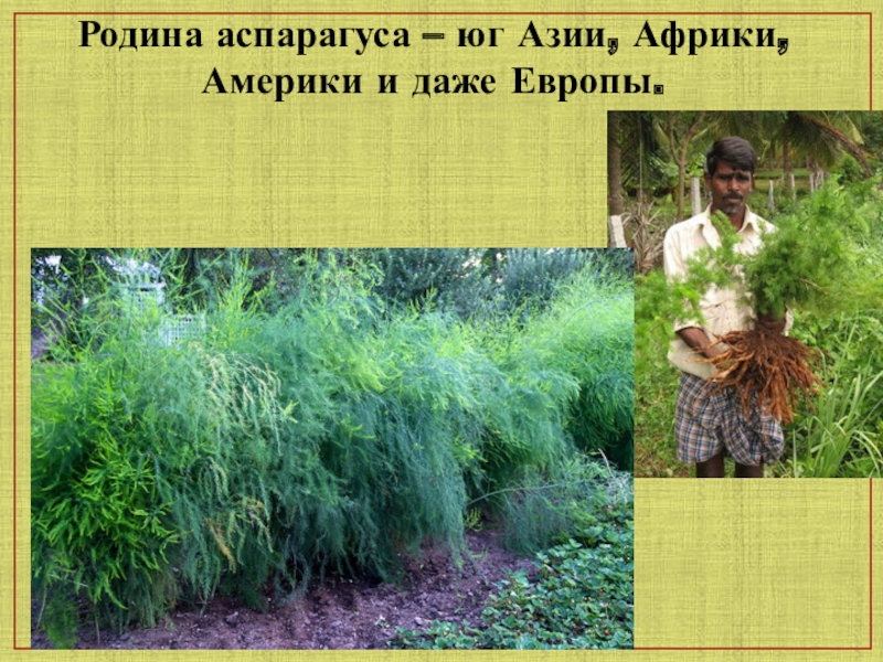 Слайд 16Родина аспарагуса – юг Азии, Африки, Америки и даже Европы.