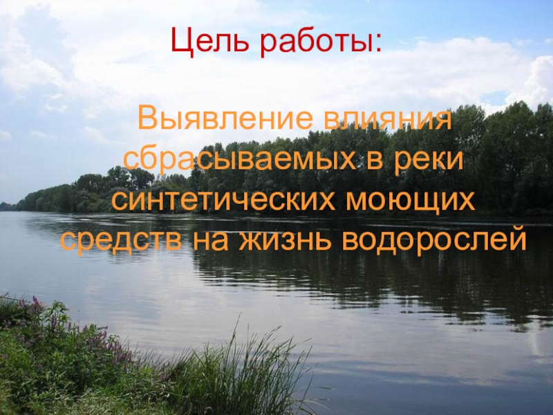 Цель работы: Выявление влияния сбрасываемых в реки синтетических моющих средств на жизнь водорослей