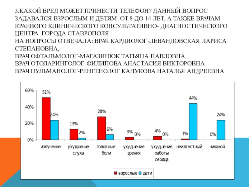 Слайд 273.КАКОЙ ВРЕД МОЖЕТ ПРИНЕСТИ ТЕЛЕФОН? ДАННЫЙ ВОПРОС ЗАДАВАЛСЯ ВЗРОСЛЫМ И ДЕТЯМ