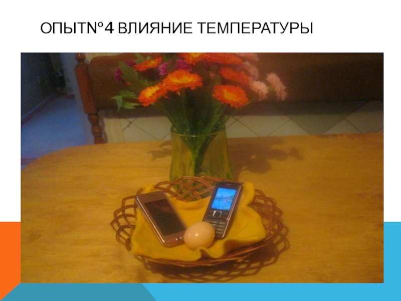 6.Измерение температуры и изменение консистенции яйца, после воздействия на него включённых нескольких телефонов в течении часа.