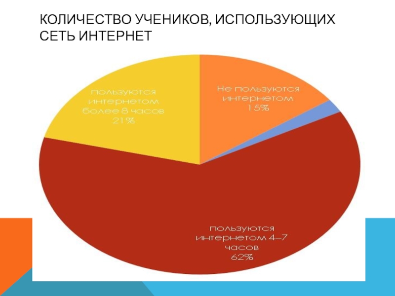 Слайд 34КОЛИЧЕСТВО УЧЕНИКОВ, ИСПОЛЬЗУЮЩИХ СЕТЬ ИНТЕРНЕТ