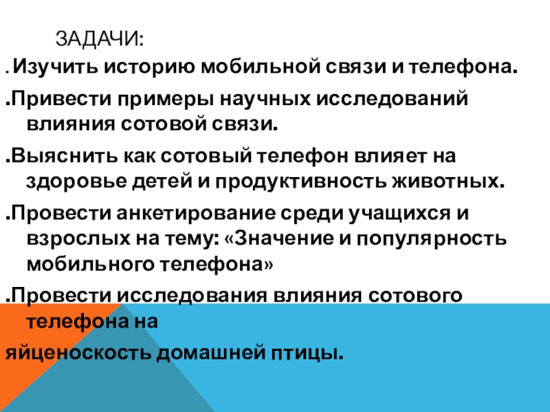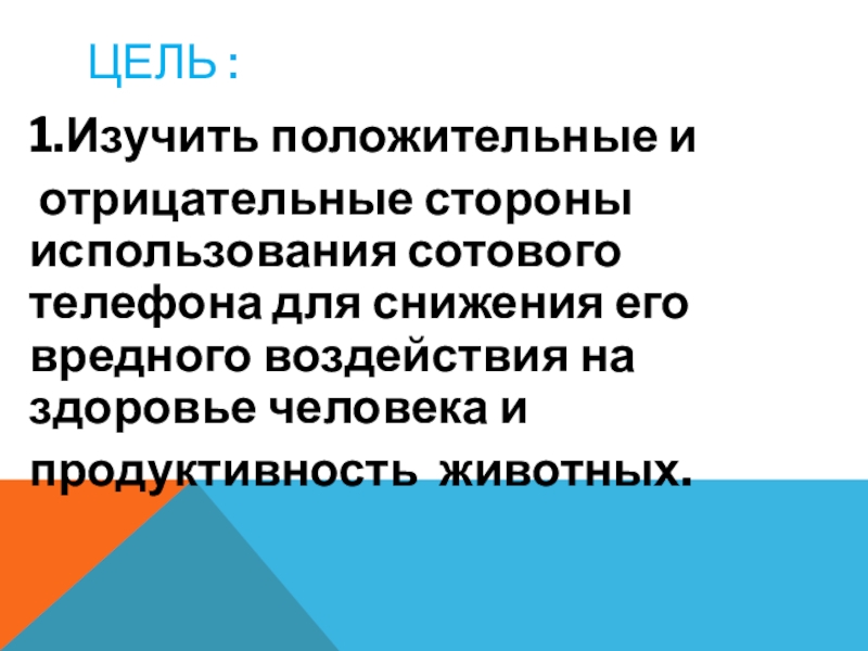 .Выяснить как сотовый телефон влияет на здоровье детей и продуктивность животных.