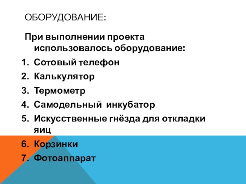 Слайд 8ОБОРУДОВАНИЕ: