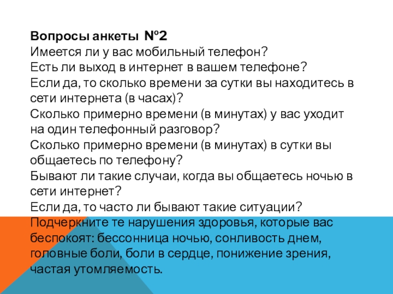 Слайд 30Вопросы анкеты №2