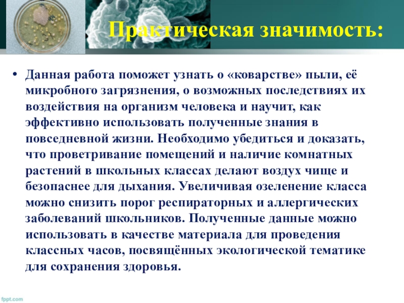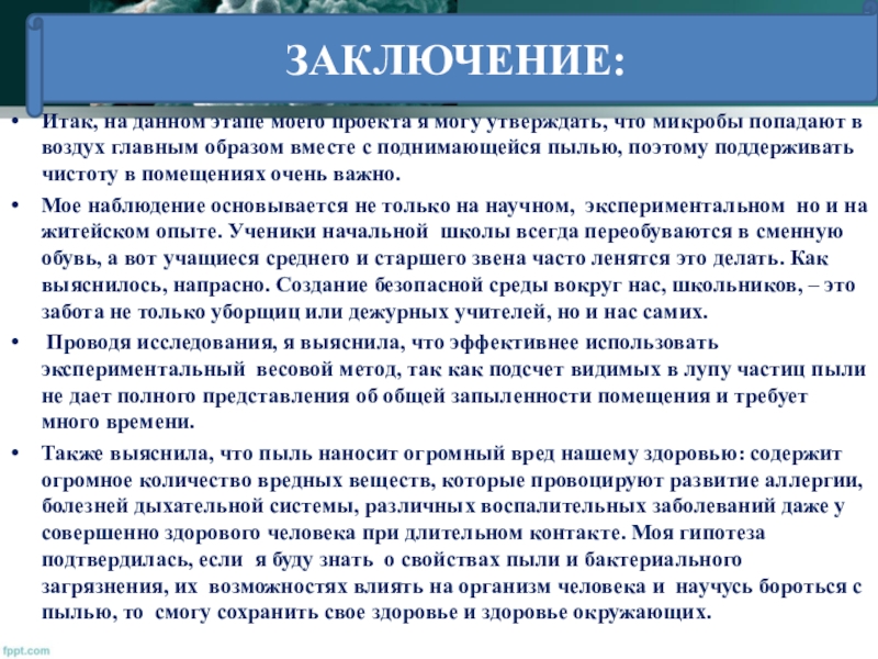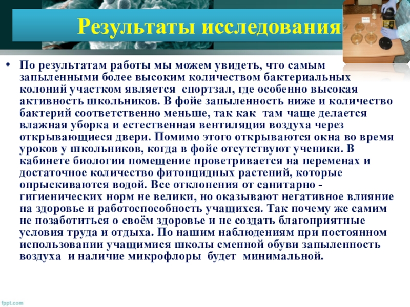Увеличено количество пыли и бактериальных колоний практически во всех помещениях школы, особенно в спортзале, где активность детей выше, чем в кабинете.